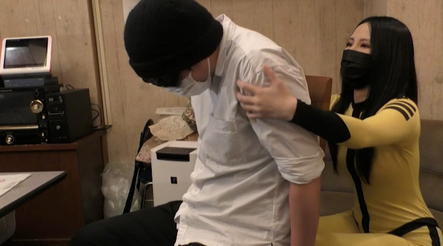 覆面マントの女性からくすぐりで拷問される茶髪男子